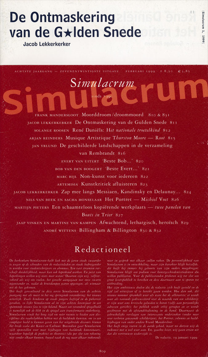 Tijdschrift voor Kunst en Cultuur. Stichting Simulacrum; Kunsthistorisch Instituut, Universiteit van Amsterdam