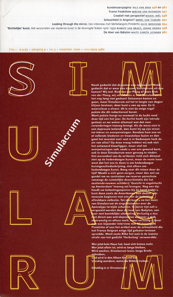 Tijdschrift voor Kunst en Cultuur. Stichting Simulacrum; Kunsthistorisch Instituut, Universiteit van Amsterdam