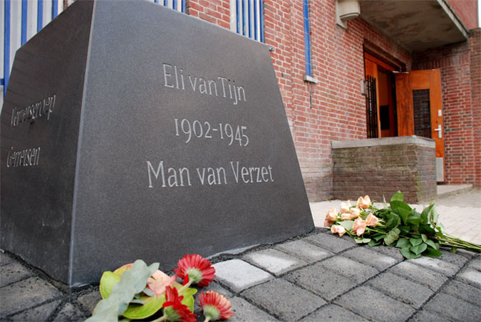 Gedenkteken voor verzetsstrijder, lid van de verzetsgroep Gerretsen en hoofd van de Joodse openbare lagere school, de Kraaipanschool, (nu ROC). Kraaipanstraat 58-60. Zie ook: Adoptiemonumenten 4 en 5 mei comité.