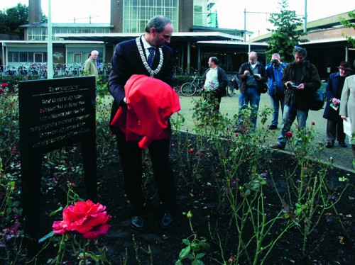 Vanaf dit station zijn tussen 3 oktober 1942 en 26 mei 1944 ruim elfduizend joden naar Westerbork weggevoerd. Ontwerp herinneringsplaquette en stadsbank met gedicht van Victor E. van Vriesland.