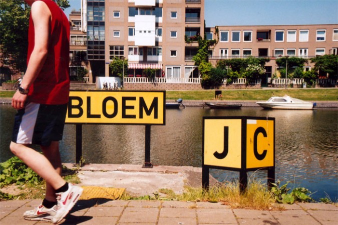 Herinneringsteken voor de dichter J.C. Bloem. Alexanderkade & Mauritskade (ter hoogte van Dapperstraat); dubbelzijdig leesbaar.