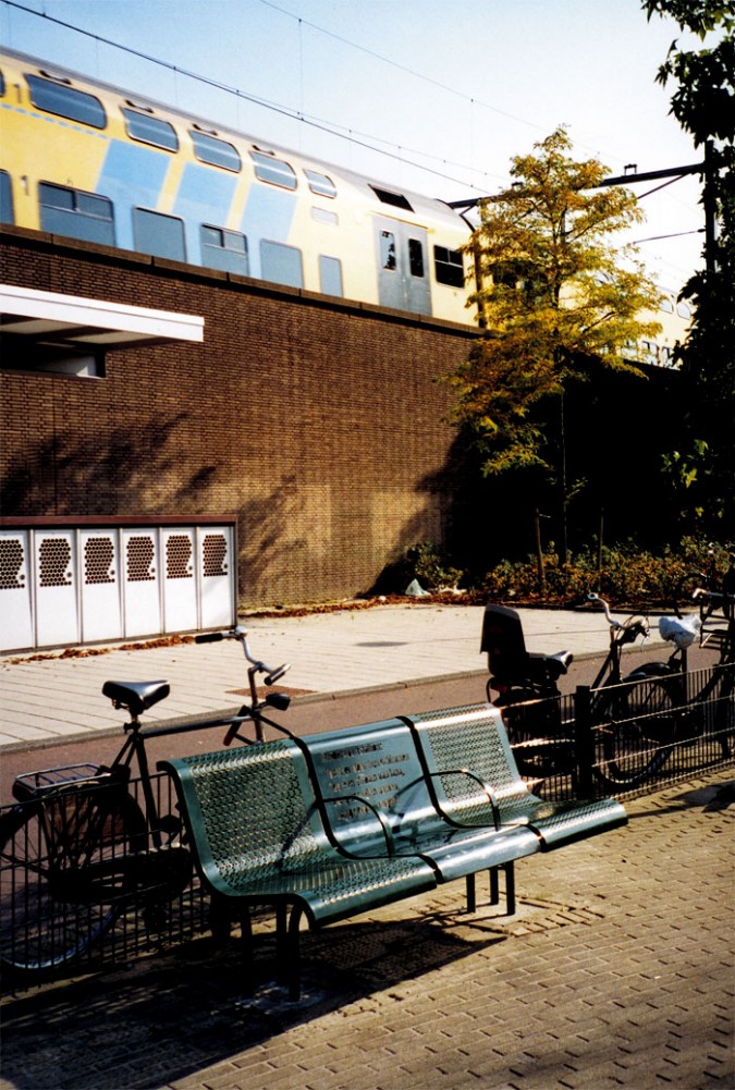 Vanaf dit station zijn tussen 3 oktober 1942 en 26 mei 1944 ruim elfduizend joden naar Westerbork weggevoerd. Ontwerp herinneringsplaquette en stadsbank met gedicht van Victor E. van Vriesland.