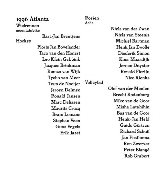 Van alle Nederlandse winnaars van Olympisch goud zijn de namen gegraveerd bij de ingang van de Marathonpoort van het in 1999 gerenoveerde stadion. In opdracht van Stichting Topsport & Stichting Reddingsfonds Olympisch Stadion. Geproduceerd door Neon Weka (Rob Nolte), Duivendrecht en Graveertechniek Hengelo.